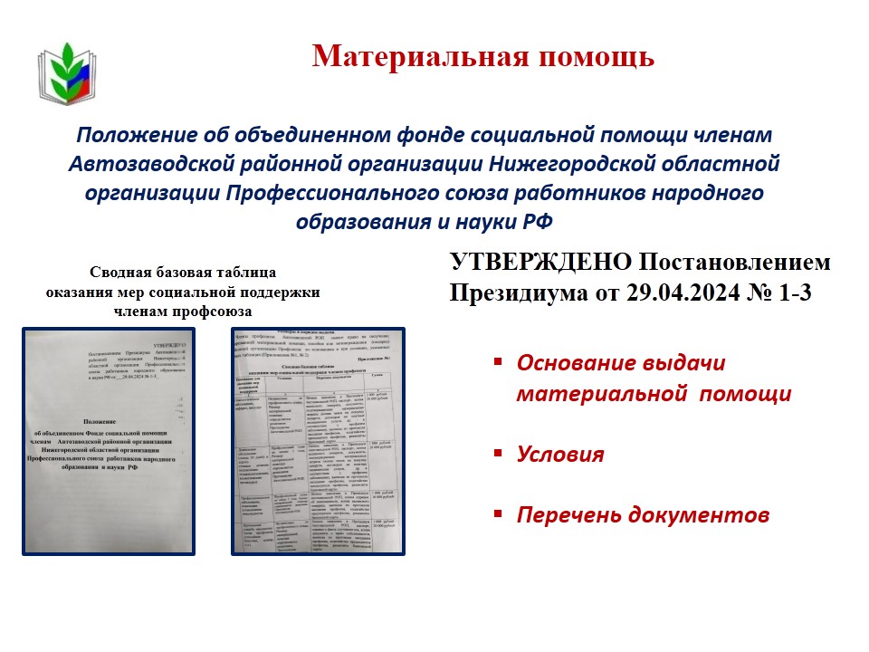 Положение об объединенном Фонде социальной помощи членам Автозаводской районной организации Нижегородской областной организации Профессионального союза работников народного образования и науки Автозаводского района